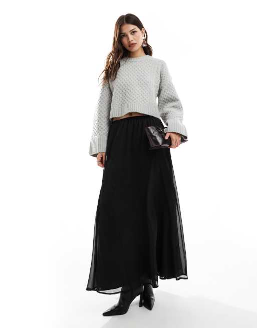 ASOS DESIGN - Sort maxinederdel med indsyede detaljer i chiffon