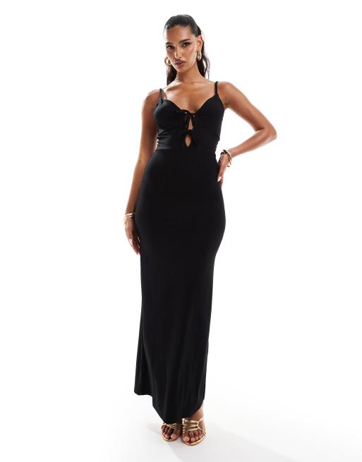 ASOS DESIGN - Sort midaxi-kjole med camistropper og skåldetalje samt bindebånd fortil