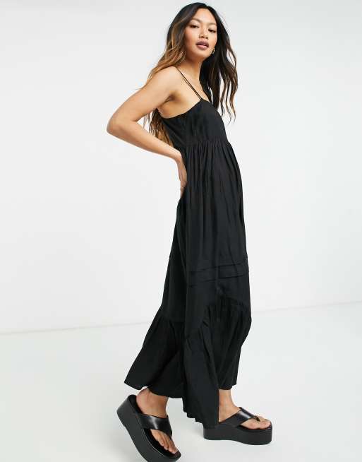ASOS DESIGN - Sort midi-sommerkjole med camistropper og pintucks