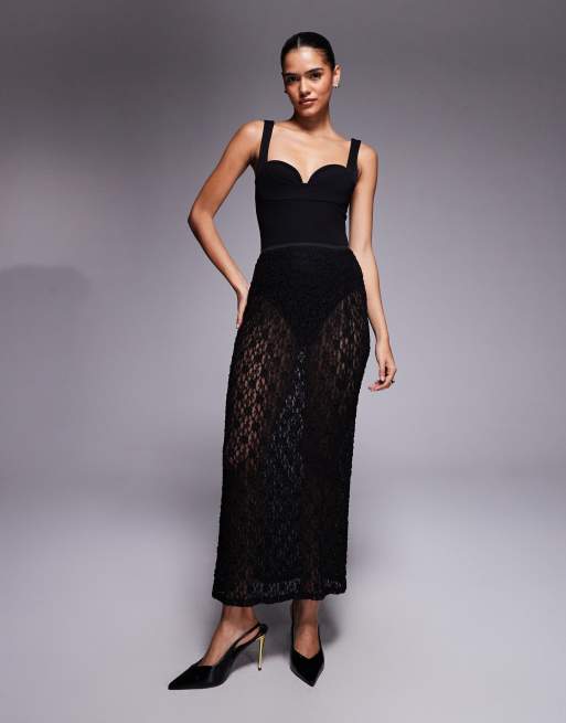 ASOS DESIGN - Sort midikjole i gennemsigtigt blondestof - Del af sæt