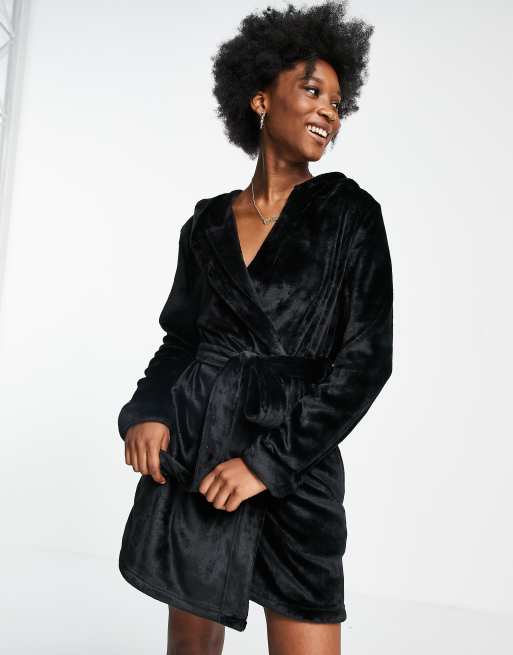 ASOS DESIGN - Sort mini-badekåbe i superblød fleece