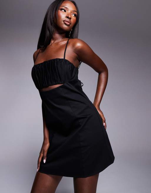 ASOS DESIGN - Sort minikjole med stropper og kontrasterende stofsamling over brystet