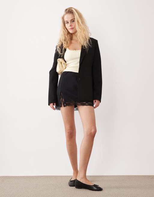 ASOS DESIGN - Sort mininederdel med slids i siden og blonder
