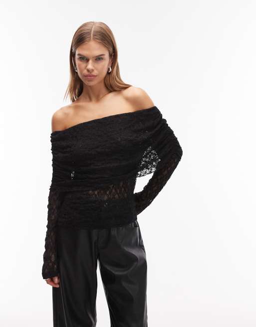 ASOS DESIGN - Sort offshoulder-blondetop med foldet kant