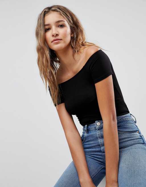 ASOS DESIGN - Sort offshoulder bodysuit med korte ærmer