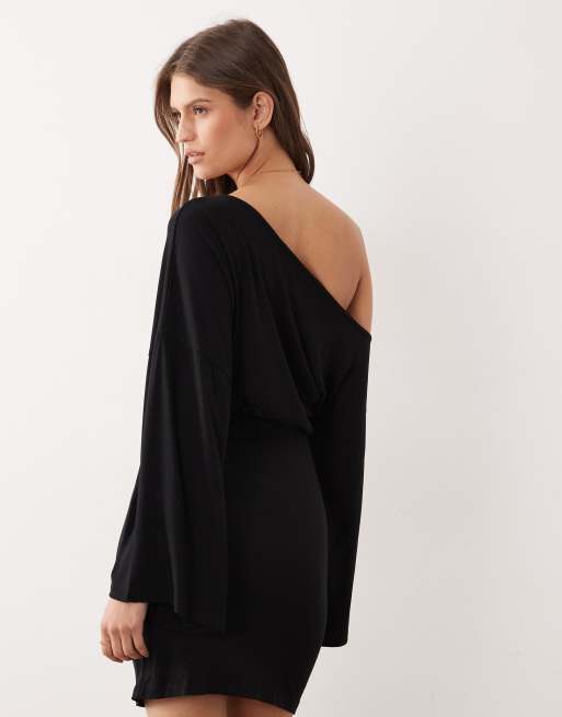 ASOS DESIGN - Sort offshoulder-minikjole med indsyet talje