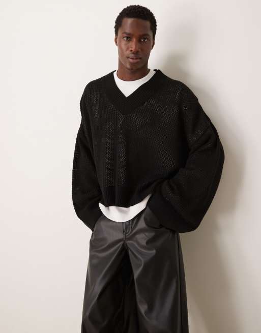 ASOS DESIGN - Sort og ekstremt oversized crop-trøje med chunky V-hals i strik