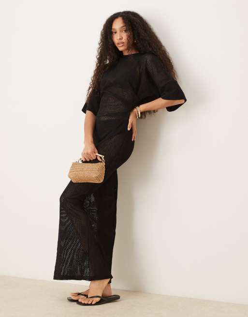 ASOS DESIGN - Sort og hæklet T-shirt-midikjole med indsyning