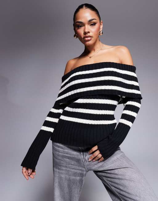 ASOS DESIGN - Sort og hvid, strikket og oversized offshoulder-trøje