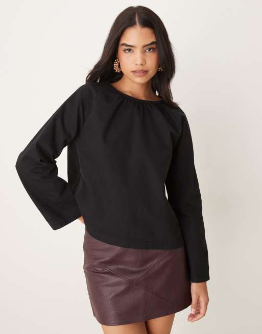 ASOS DESIGN - Sort og langærmet raglantop i denim