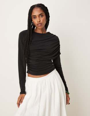 ASOS DESIGN - Sort og langærmet slå om-T-shirt i modal