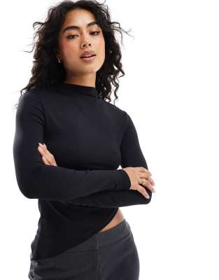 ASOS DESIGN - Sort og langærmet top med asymmetrisk kant i polyamid