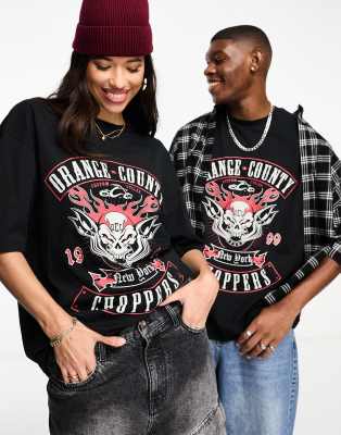 ASOS DESIGN - Sort og oversized unisex-T-shirt med licenseret Choppers-grafik