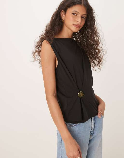 ASOS DESIGN - Sort og ærmeløs top med guldfarvet knapdetalje