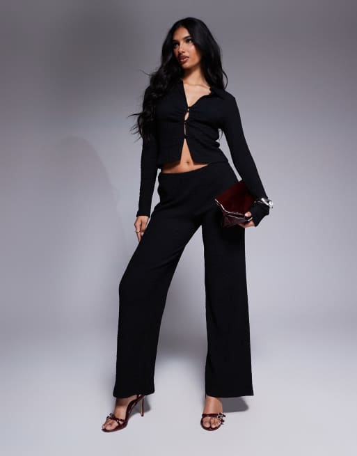 ASOS DESIGN - Sort og tekstureret sæt med langærmet skjorte med knapper og bukser med brede ben