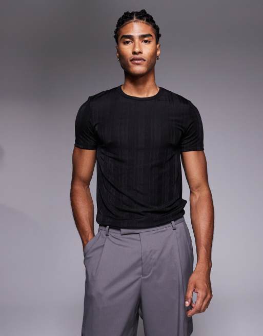 ASOS DESIGN - Sort og tætsiddende T-shirt i gennemsigtigt mesh med ribber