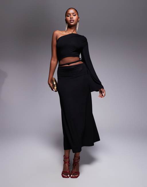 ASOS DESIGN - Sort oneshoulder-maxikjole med vingeærme og snoet udskæring
