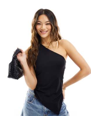 ASOS DESIGN - Sort oneshoulder-overdel med stropper