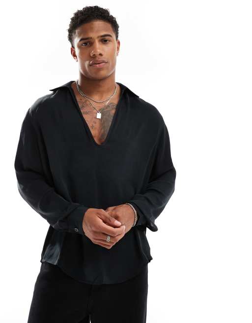 ASOS DESIGN - Sort overhead-skjorte i satin