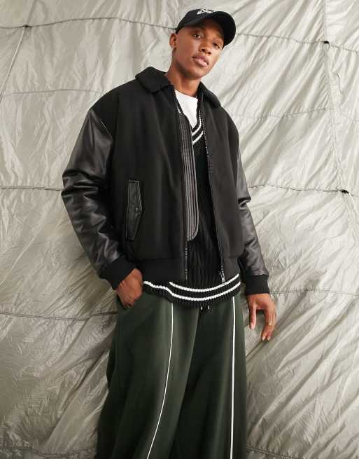 ASOS DESIGN - Sort oversized bomber-jakke med krave af imiteret lammeskind