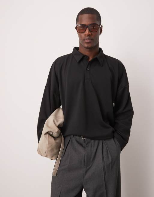 ASOS DESIGN - Sort, oversized og cropped polotrøje i scuba-agtigt stof med lavtsiddende skuldre