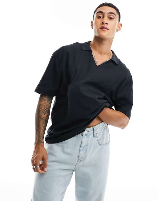 ASOS DESIGN - Sort oversized polo med vaffelstruktur