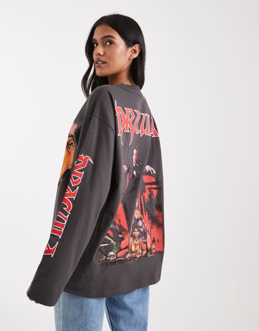 ASOS DESIGN - Sort oversized skater-T-shirt med lange ærmer og licenseret 'Dracula'-grafik