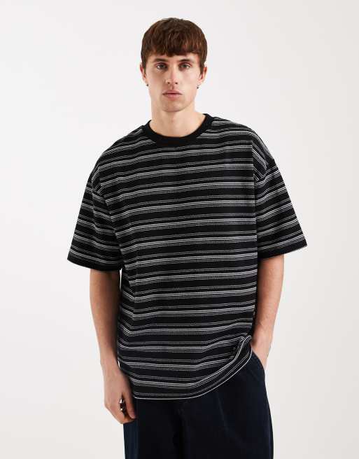 ASOS DESIGN - Sort oversized T-shirt i kraftigt stof med teksturerede striber