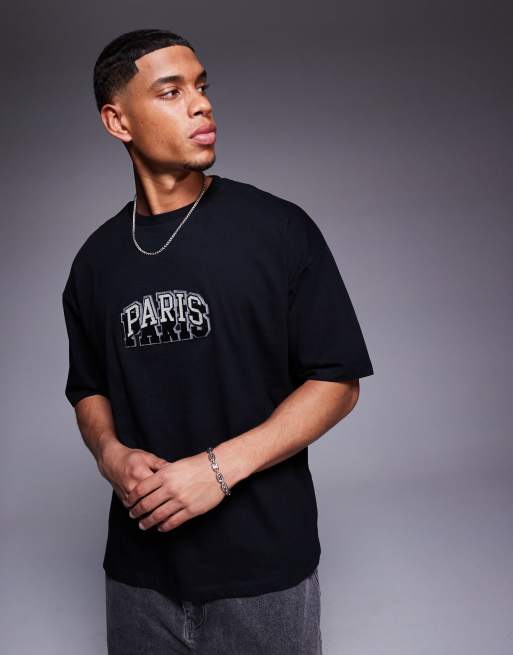 ASOS DESIGN - Sort oversized T-shirt med bybroderi