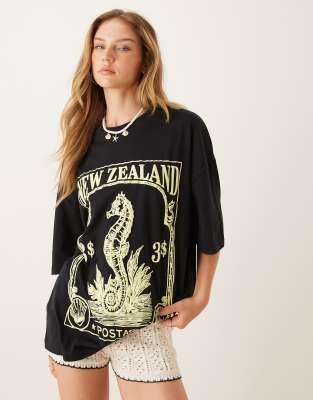 ASOS DESIGN - Sort oversized T-shirt med New Zealand-grafik