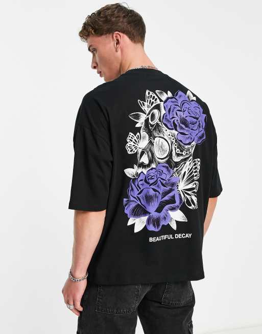ASOS DESIGN - Sort oversized T-shirt med rosenprint på bryst og ryg