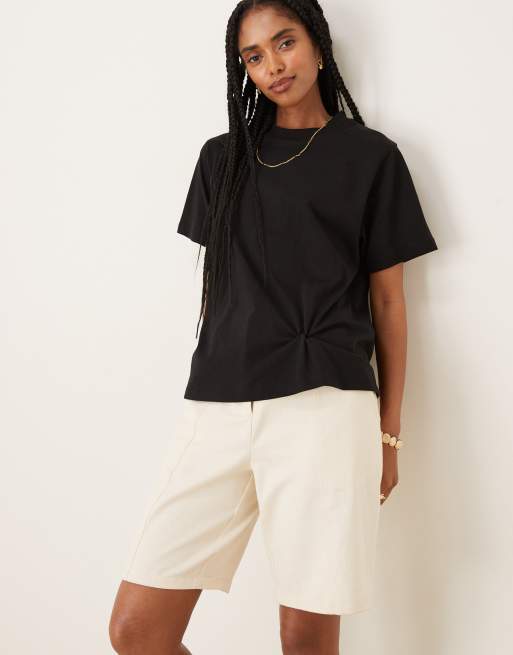 ASOS DESIGN - Sort oversized T-shirt med snoede rynkede detaljer
