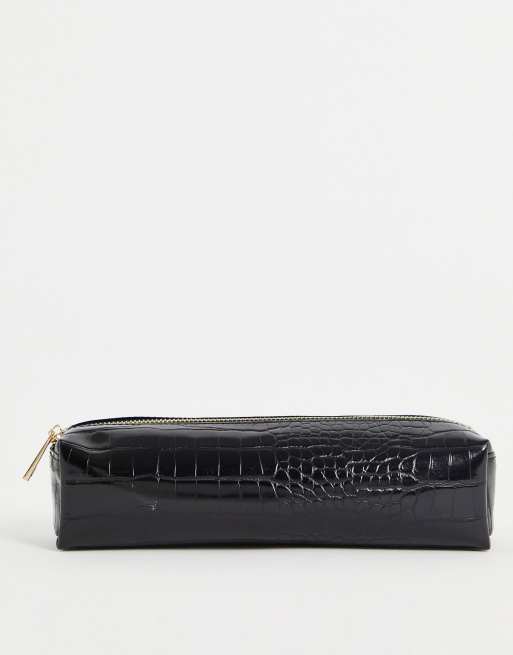 ASOS DESIGN - Sort penalhus i imiteret krokodilleskind
