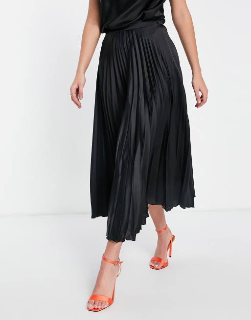 ASOS DESIGN - sort plisseret midinederdel i satin