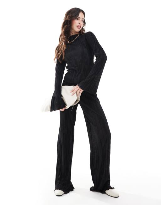 ASOS DESIGN - Sort plisseret top med trompetærmer og bukser