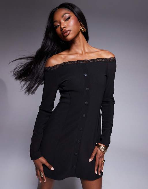 ASOS DESIGN - Sort ribstrikket bardot-skaterkjole