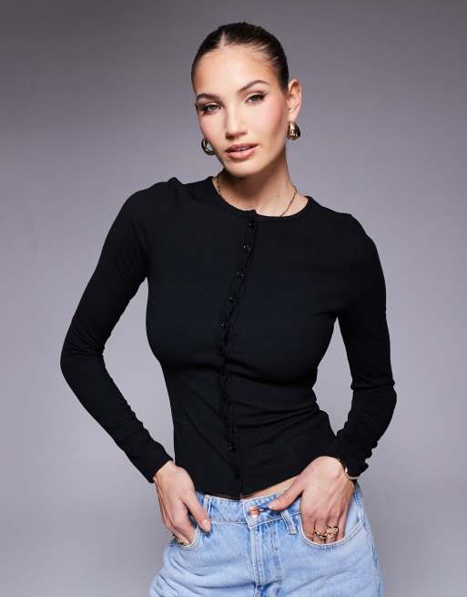 ASOS DESIGN - Sort ribstrikket cardigan med knapper