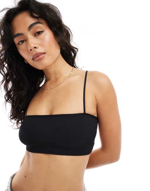 ASOS DESIGN - Sort ribstrikket croptop med krydsende detaljer på ryggen