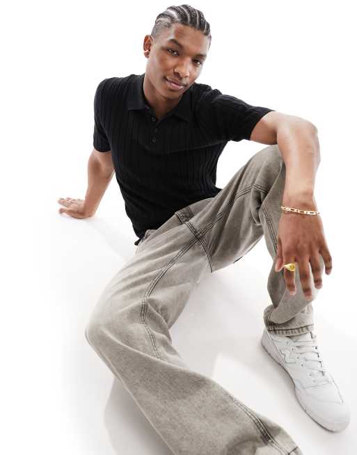 ASOS DESIGN - Sort ribstrikket tætsiddende polo-t-shirt