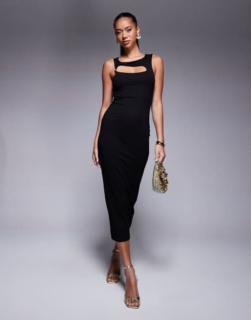 ASOS DESIGN - Sort ærmeløs midikjole med asymmetrisk udskæring