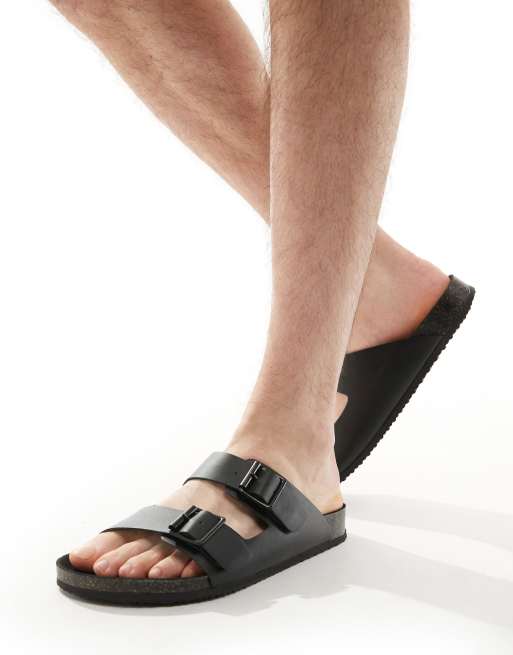 ASOS DESIGN - Sort sandaler med to remme og sort sål