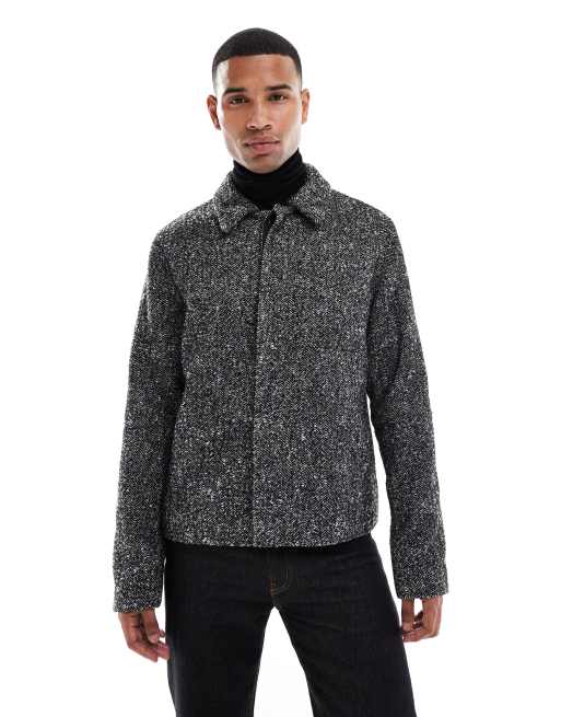 ASOS DESIGN - Sort skjortejakke med sildebensmønster i uldlook