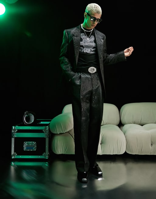 ASOS DESIGN - Sort slim-jakkesæt i moiré-jacquard