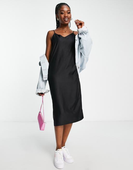 ASOS DESIGN - Sort slip-midikjole med V-hals