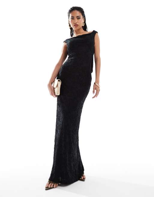 ASOS DESIGN - Sort softline-midikjole i devoré med vandfaldsudskæring i ryggen