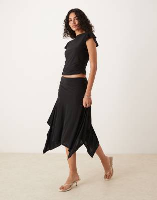 ASOS DESIGN - Sort sæt med flagrende top og nederdel med tørklædekant