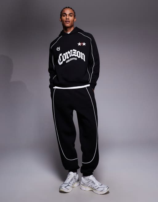 ASOS DESIGN - Sort sæt med oversized joggingbukser og hættetrøje med kantbåndsdetalje