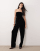 ASOS DESIGN - Sort sæt med skræddersyet bandeau-top med peplum-kant og tapered bukser i velour
