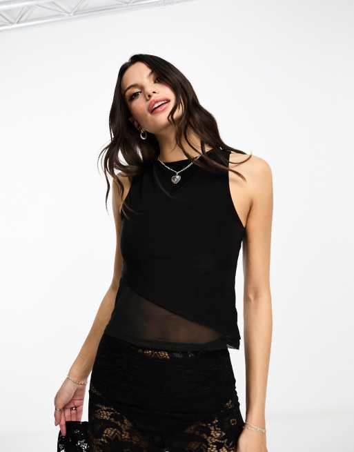 ASOS DESIGN - Sort stram tynd overdel med udskæringer