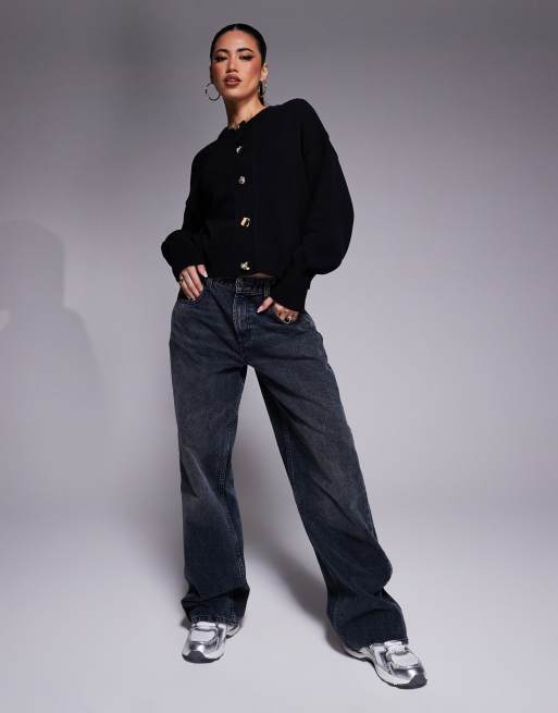 ASOS DESIGN - Sort strikket cardigan med forskellige guldfarvede knapper